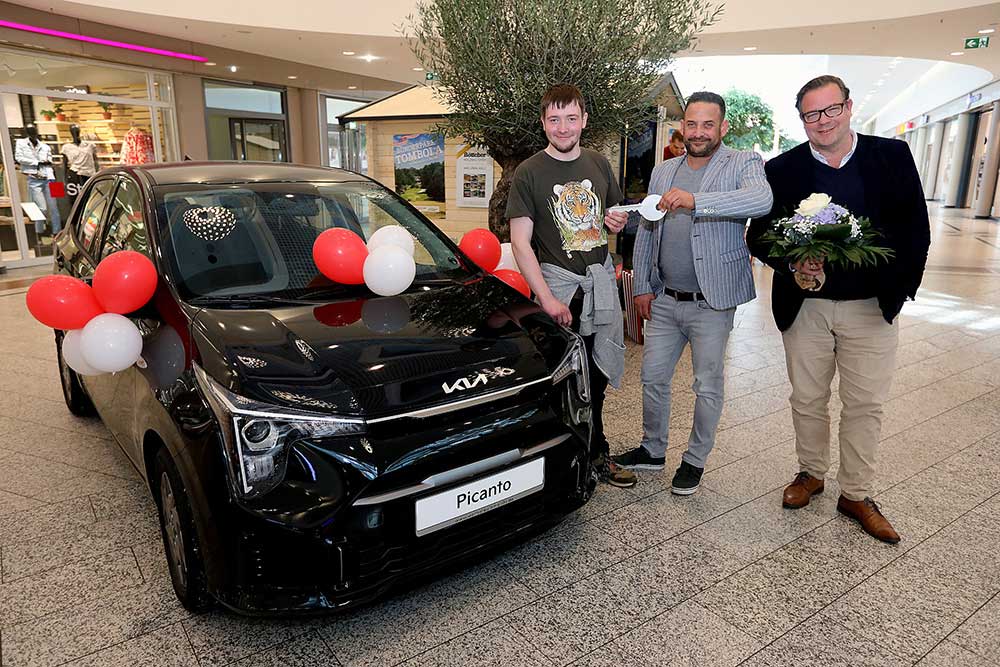 Lars Fröhlke, Vertriebsleiter von Werner Automobile sowie Weserpark Centermanager Stefan Dorster, gratulierten Herrn Reinhardt persönlich zu seinem außergewöhnlichen Glücksfall. „Es ist immer wieder schön zu sehen, wie eine spontane Entscheidung das Leben verändern kann. Wir wünschen Herrn Reinhardt viel Freude mit seinem neuen Fahrzeug und viel Erfolg bei seiner Fahrschulprüfung", so Fröhlke und Dorster.